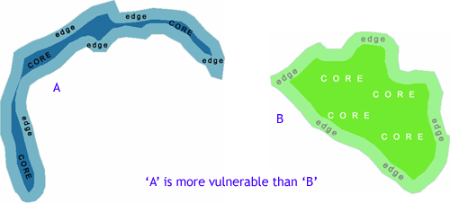 the buffer are from ecosystem total area = core